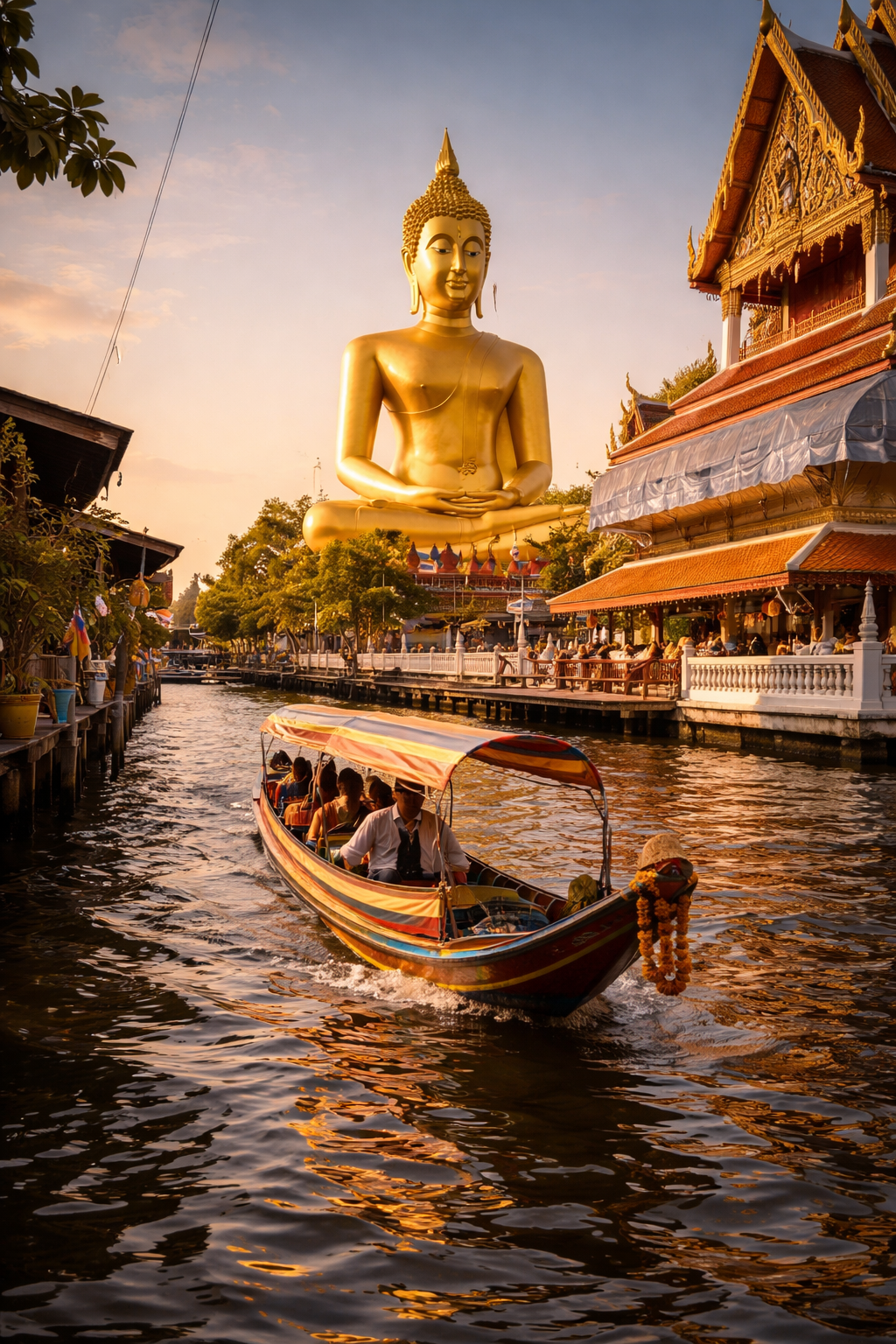 Klongs en long tail boat, Grand Palais, Wat Pho, Chinatown, marchés flottants et ambiance locale.